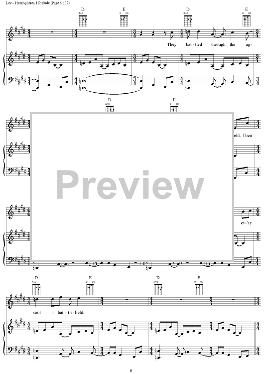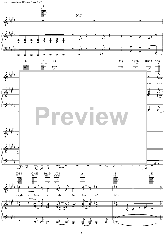 Digital Sheet Music for Hemispheres, Part 1: Prelude by Rush, Geddy Lee, Alex Lifeson, Neil Peart scored for Piano/Vocal/Chords; id:241664