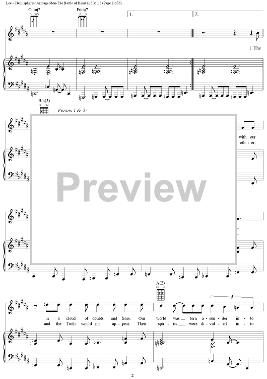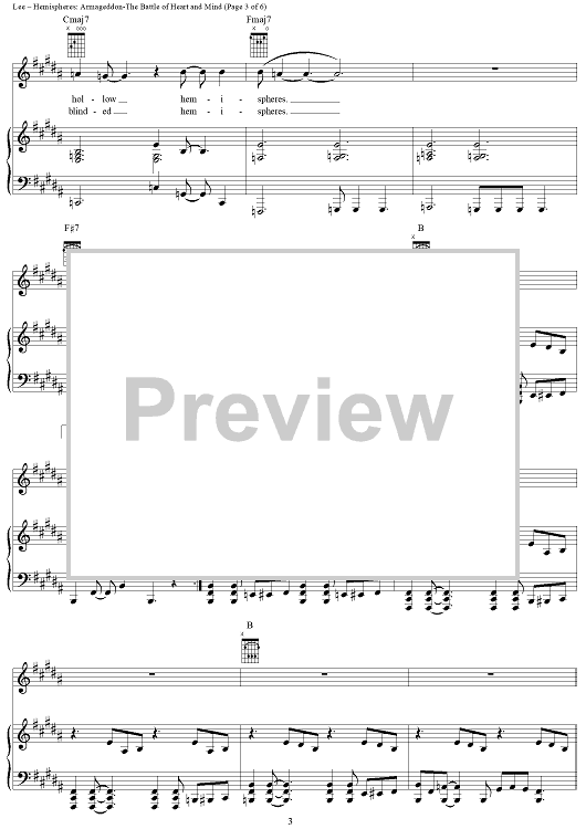 Digital Sheet Music for Hemispheres, Part 4: Armageddon - The Battle of Heart and Mind by Rush, Geddy Lee, Alex Lifeson, Neil Peart scored for Piano/Vocal/Chords; id:241301