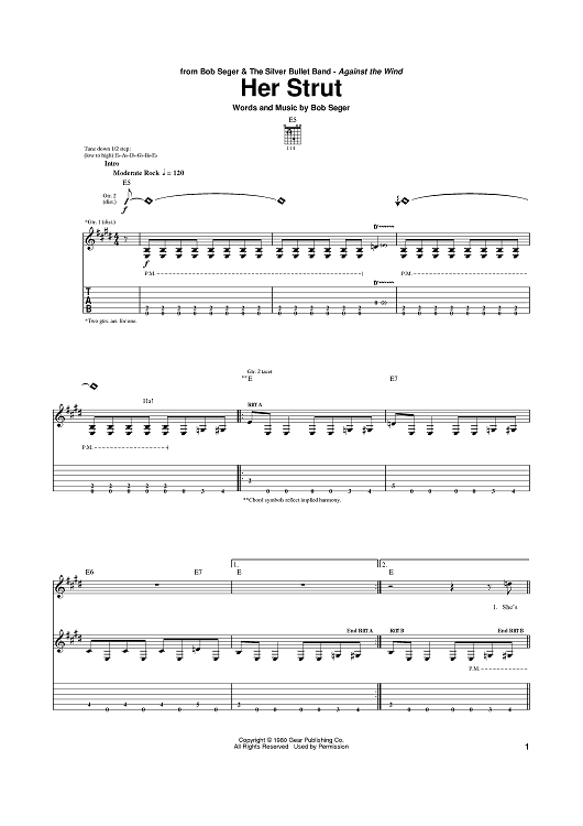 Digital Sheet Music for Her Strut by Bob Seger scored for Guitar Tab; id:371892