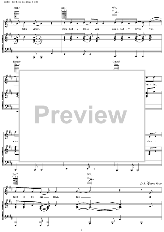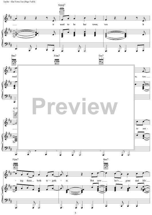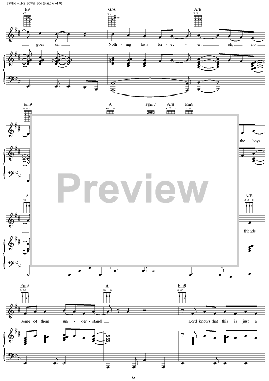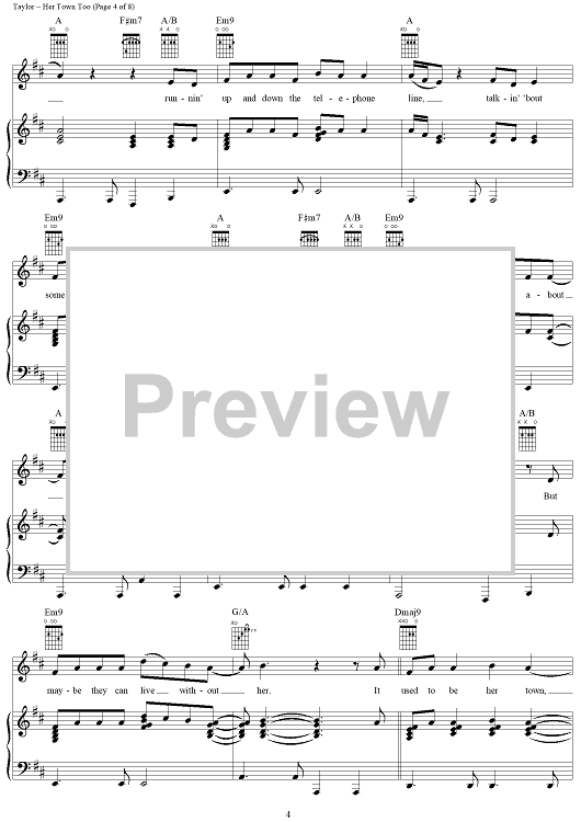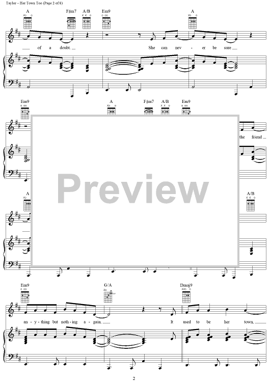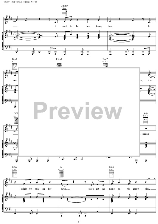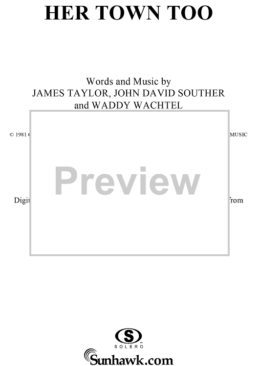 Digital Sheet Music for Her Town Too by James Taylor, Waddy Wachtel, John David Souther scored for Piano/Vocal/Chords; id:286040