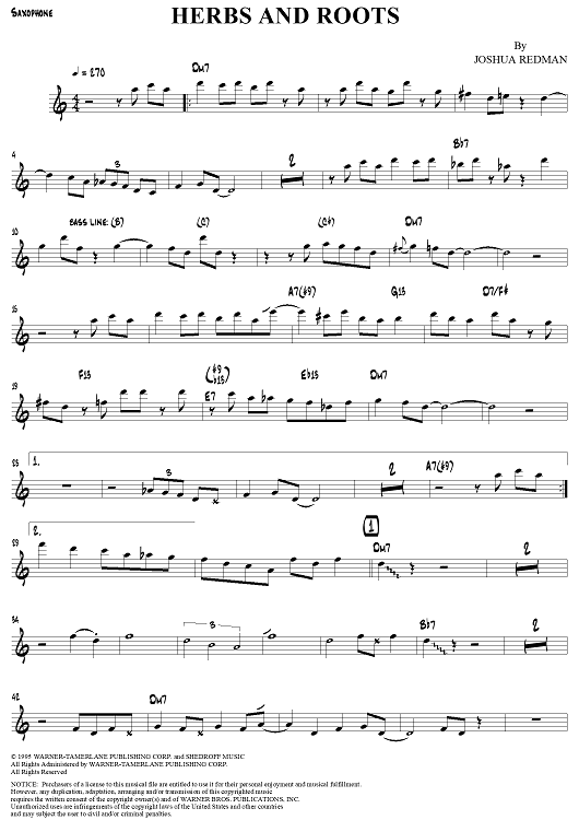 Digital Sheet Music for Herbs and Roots by Joshua Redman scored for Saxophone Solo; id:308780