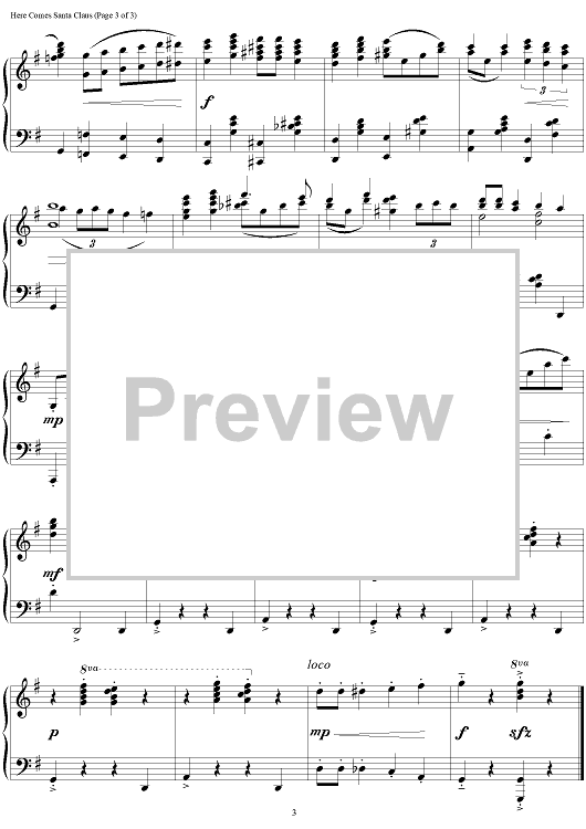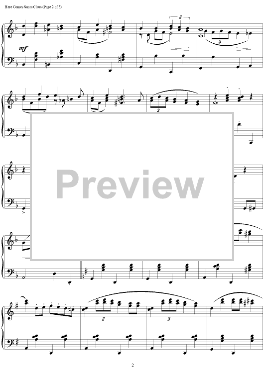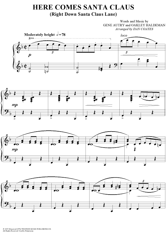 Digital Sheet Music for Here Comes Santa Claus by Dan Coates, Gene Autry, Oakley Haldeman scored for Piano Solo; id:292149