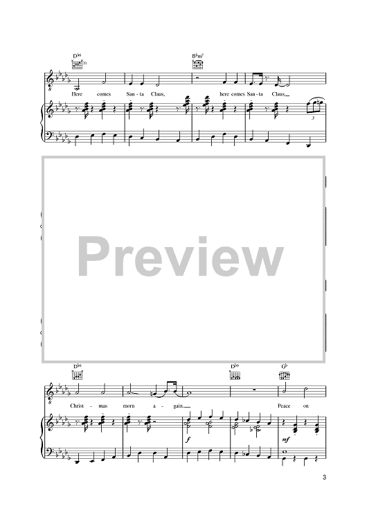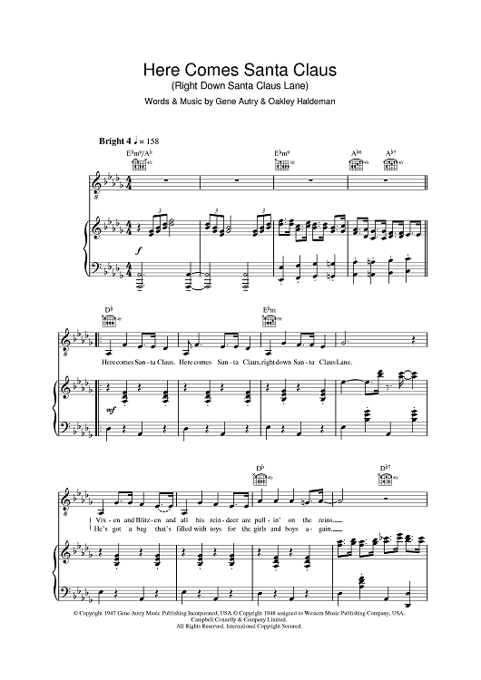 Digital Sheet Music for Here Comes Santa Claus (Right Down Santa Claus Lane) by Gene Autry, Oakley Haldeman scored for Piano/Vocal/Chords; id:392662