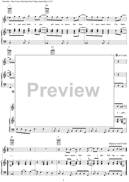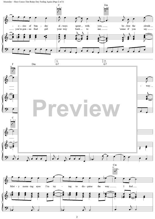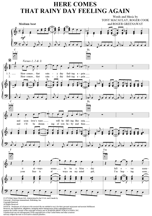 Digital Sheet Music for Here Comes That Rainy Day Feeling Again by Tony Macaulay, Roger Greenaway, Roger Cook, The Fortunes scored for Piano/Vocal/Chords; id:286543