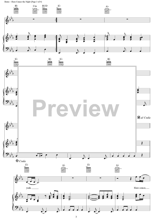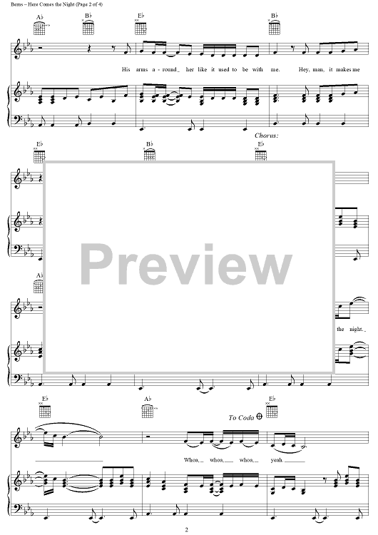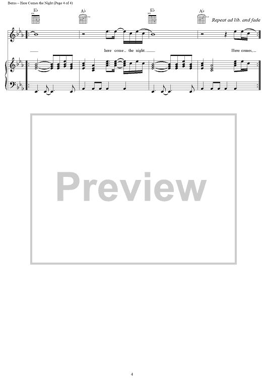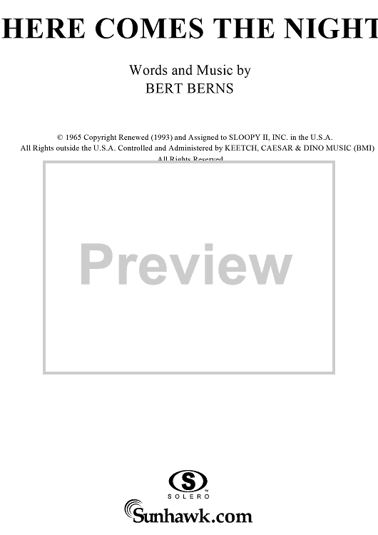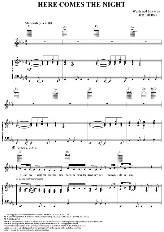 Digital Sheet Music for Here Comes the Night by Bert Berns, Dwight Yoakam scored for Piano/Vocal/Chords; id:275803