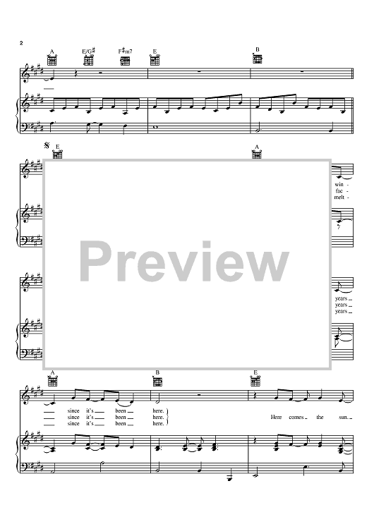 Digital Sheet Music for Here Comes The Sun by The Beatles, Linda Eder, George Harrison scored for Piano/Vocal/Chords; id:371885