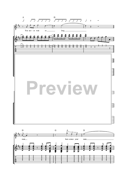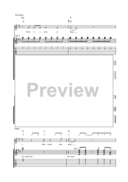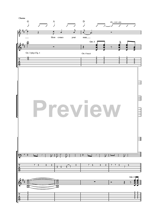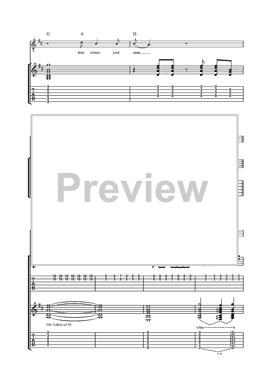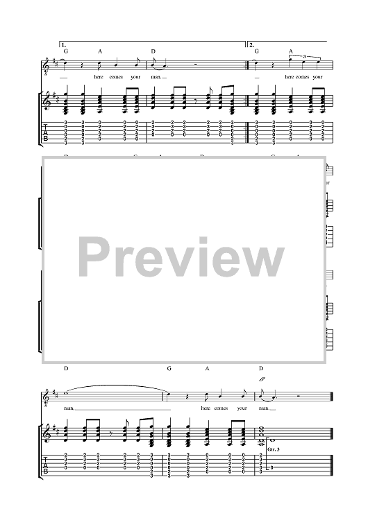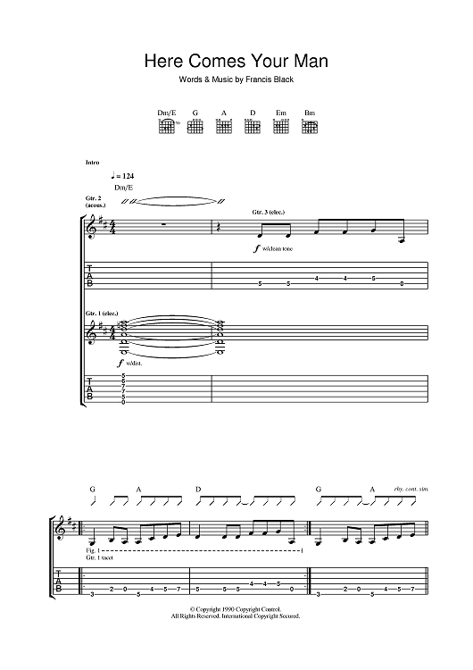 Digital Sheet Music for Here Comes Your Man by Francis Black, Pixies scored for Guitar Tab; id:398763