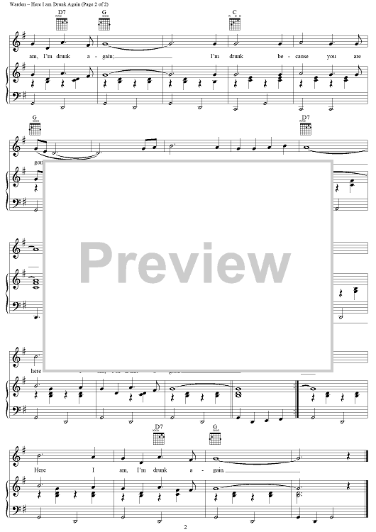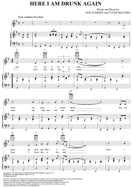 Digital Sheet Music for Here I am Drunk Again by Moe Bandy, Clyde Beavers, Don Warden scored for Piano/Vocal/Chords; id:264568
