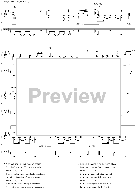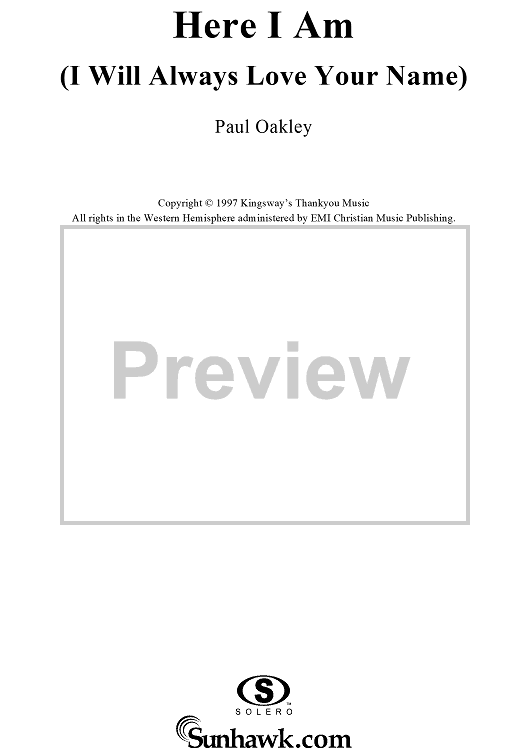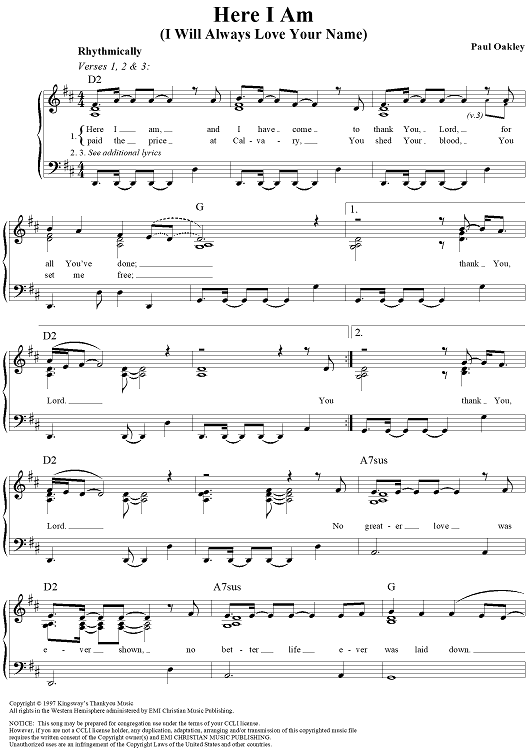 Digital Sheet Music for Here I Am (I Will Always Love Your Name) by Paul Oakley scored for Piano/Vocal/Chords; id:191443