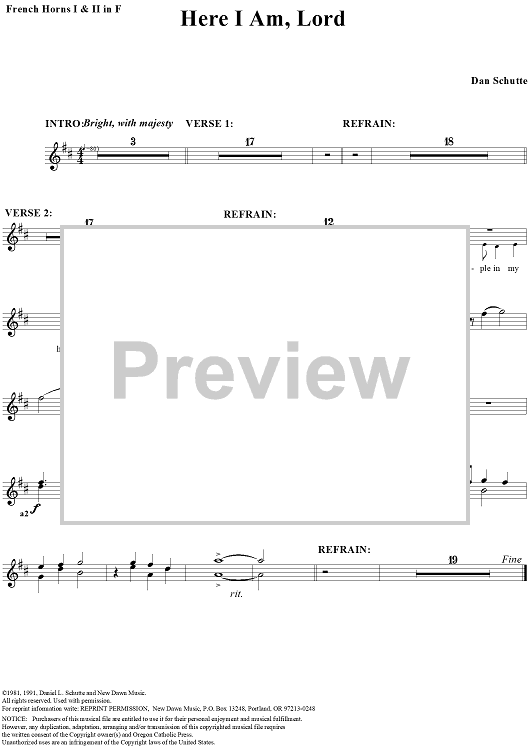 Digital Sheet Music for Here I Am, Lord - F Horns 1 & 2 by Michael Pope, SJ, John Weissrock, Dan Schutte scored for Horns in F; id:95917