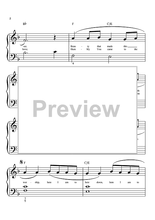 Digital Sheet Music for Here I Am To Worship by Tim Hughes, Phillip Keveren, Phillips, Craig and Dean scored for Big Note Piano; id:396889