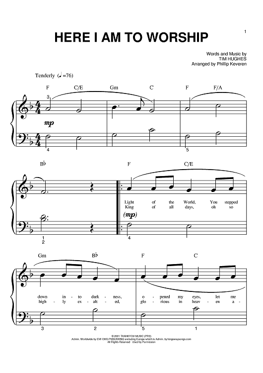 "Here I Am To Worship" Sheet Music by Tim Hughes