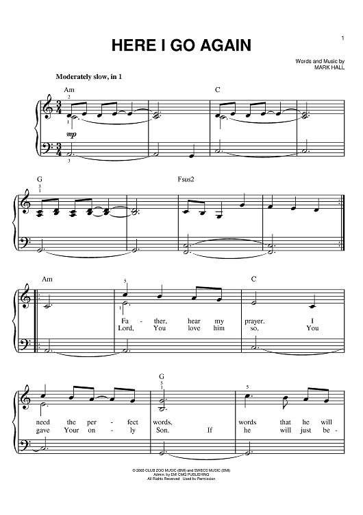 Digital Sheet Music for Here I Go Again by Mark Hall, Casting Crowns scored for Easy Piano; id:387341