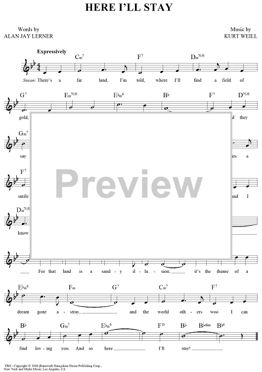 Digital Sheet Music for Here I'll Stay by Alan Jay Lerner, Kurt Weill scored for Lead Sheet; id:449121
