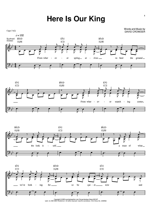 Digital Sheet Music for Here Is Our King by David Crowder, David Crowder Band scored for Piano/Vocal/Chords; id:393797