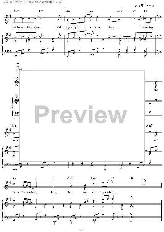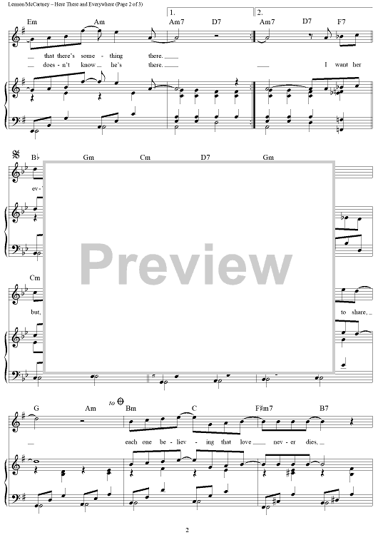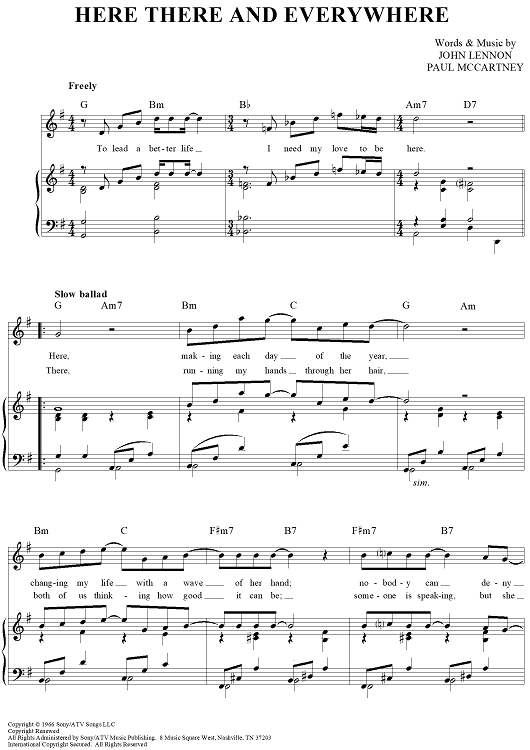 Digital Sheet Music for Here There and Everywhere by Paul McCartney, The Beatles, John Lennon scored for Piano/Vocal/Chords; id:360874