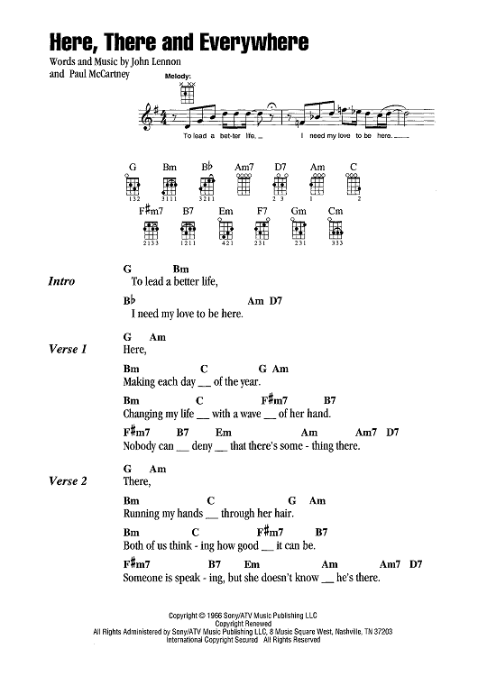 Digital Sheet Music for Here, There and Everywhere by Paul McCartney, The Beatles, John Lennon scored for Ukulele/Vocal; id:466389