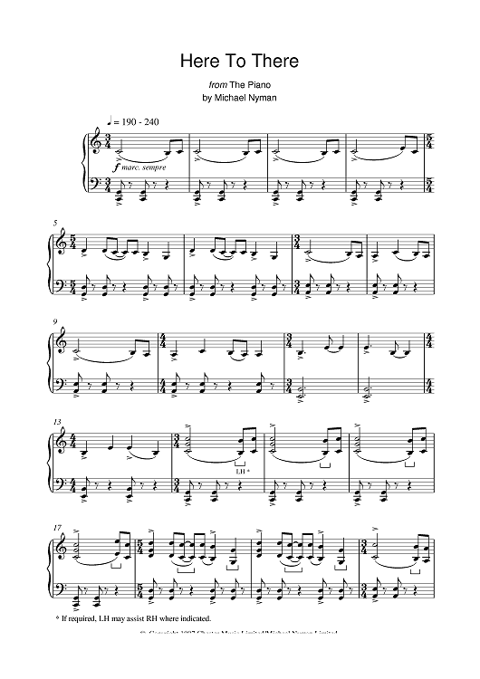 Digital Sheet Music for Here To There by Michael Nyman scored for Piano; id:377327