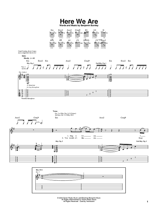 Digital Sheet Music for Here We Are by Breaking Benjamin, Benjamin Burnley scored for Guitar Tab; id:395021