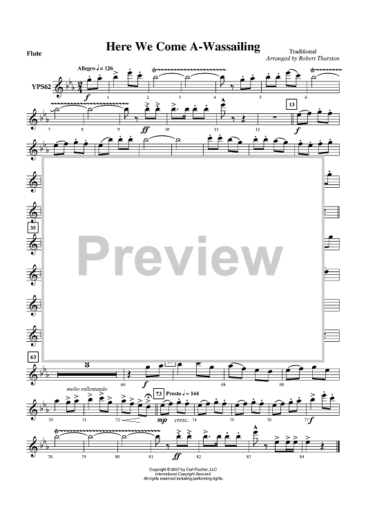 Digital Sheet Music for Here We Come A-Wassailing - Flute by Traditional, Robert Thurston scored for Concert Band; id:407735