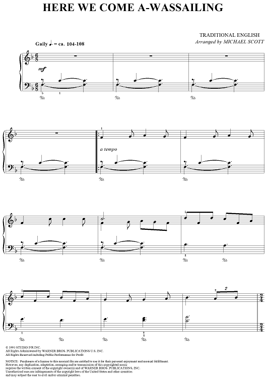 Digital Sheet Music for Here We Come A-Wassailing by Michael Scott, Traditional scored for Piano Solo; id:261160