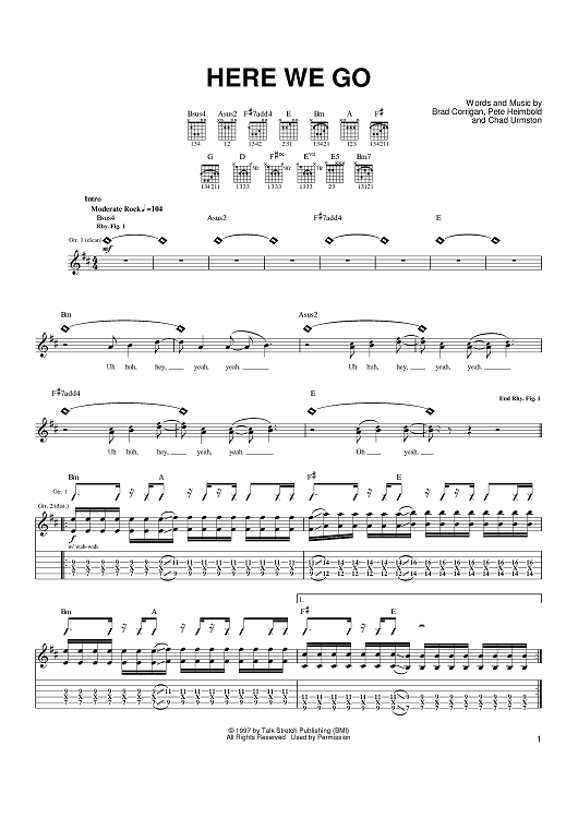 Digital Sheet Music for Here We Go by Brad Corrigan, Dispatch, Pete Francis Heimbold, Chad Urmston scored for Guitar Tab; id:372986