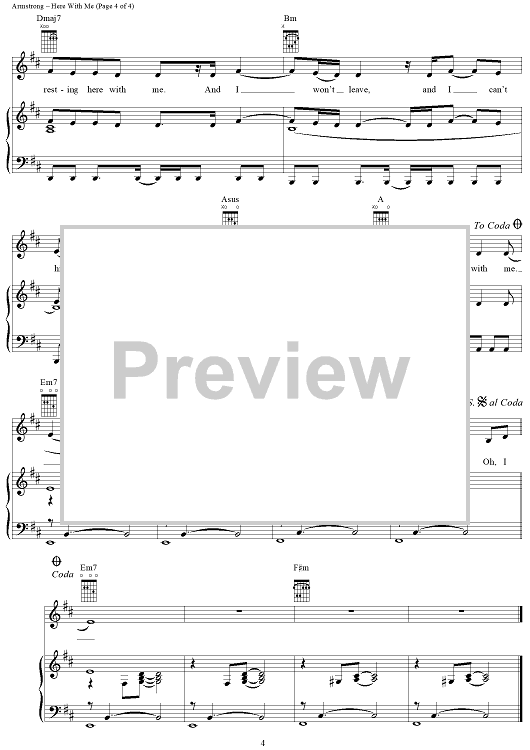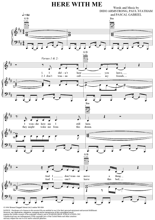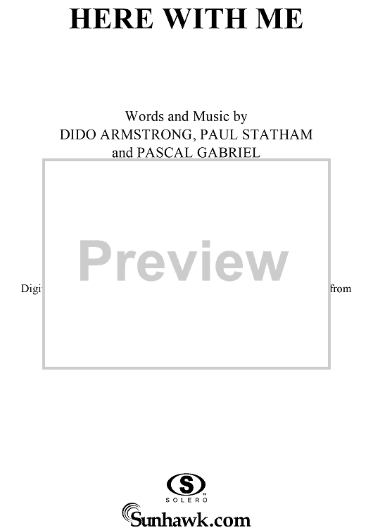 Digital Sheet Music for Here With Me by Pascal Gabriel, Paul Statham, Dido Armstrong, Dido scored for Piano/Vocal/Chords; id:285322