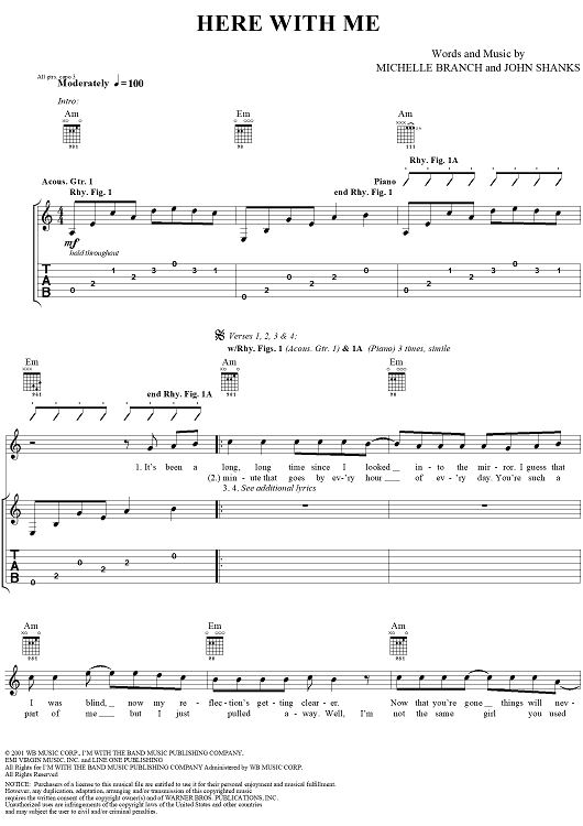 "Here with Me" Sheet Music by Michelle Branch