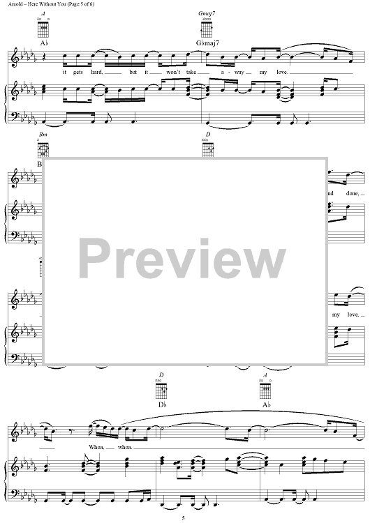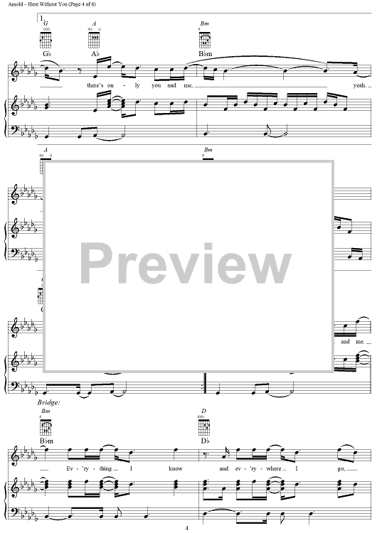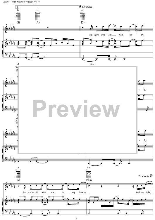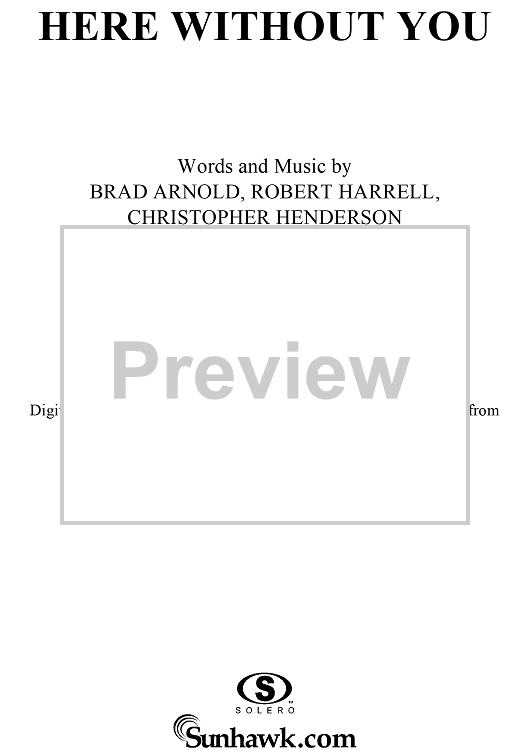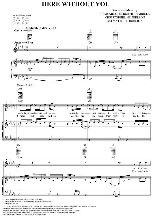 Digital Sheet Music for Here Without You by 3 Doors Down, Matt Roberts, Brad Arnold, Todd Harrell, Chris Henderson scored for Piano/Vocal/Chords; id:303057