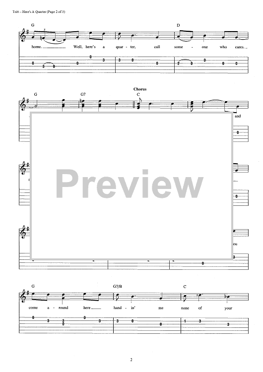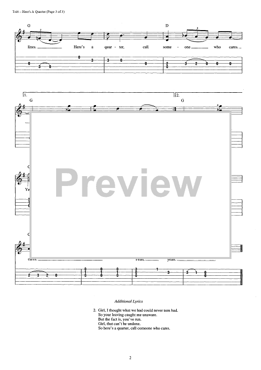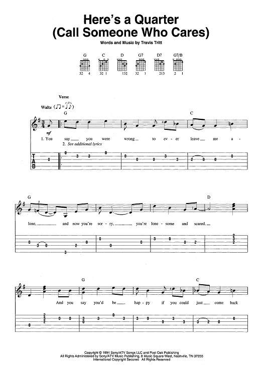 Digital Sheet Music for Here's A Quarter (Call Someone Who Cares) by Travis Tritt scored for Easy Guitar Tab/Vocal; id:393010