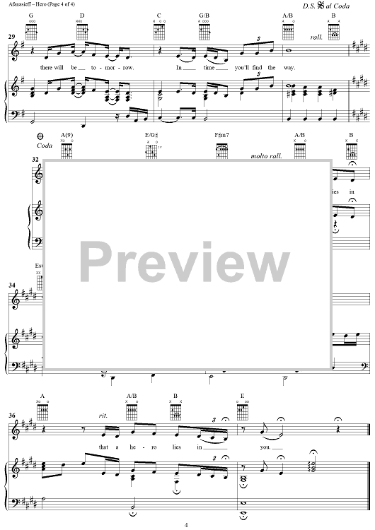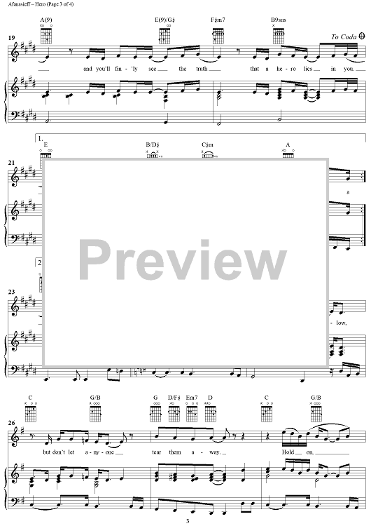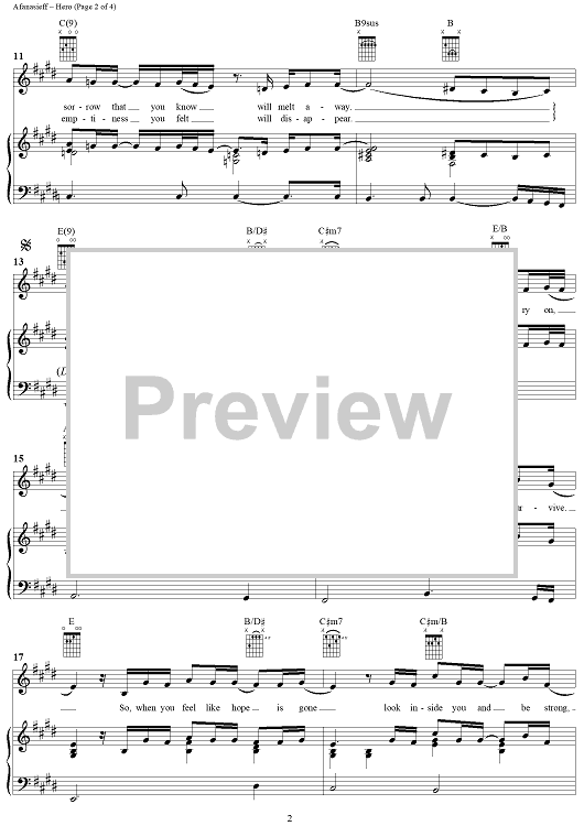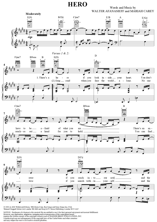 Digital Sheet Music for Hero by Mariah Carey, Wally Afanasieff scored for Piano/Vocal/Chords; id:283800