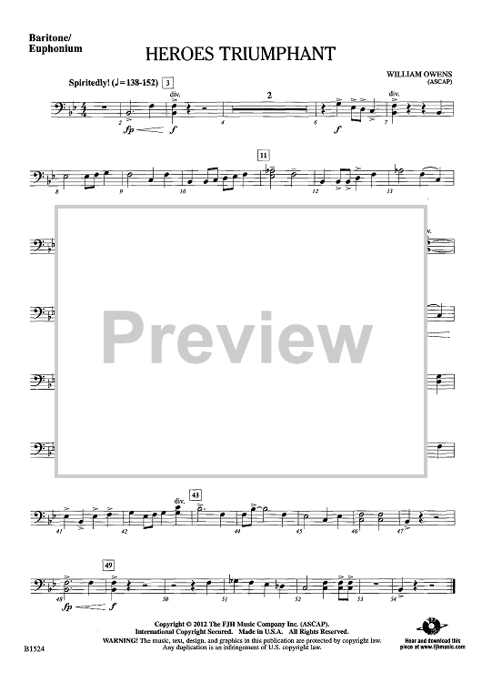 Digital Sheet Music for Heroes Triumphant - Baritone/Euphonium by William Owens scored for Concert Band; id:438825