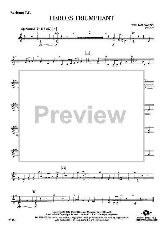 Digital Sheet Music for Heroes Triumphant - Baritone TC by William Owens scored for Concert Band; id:438826