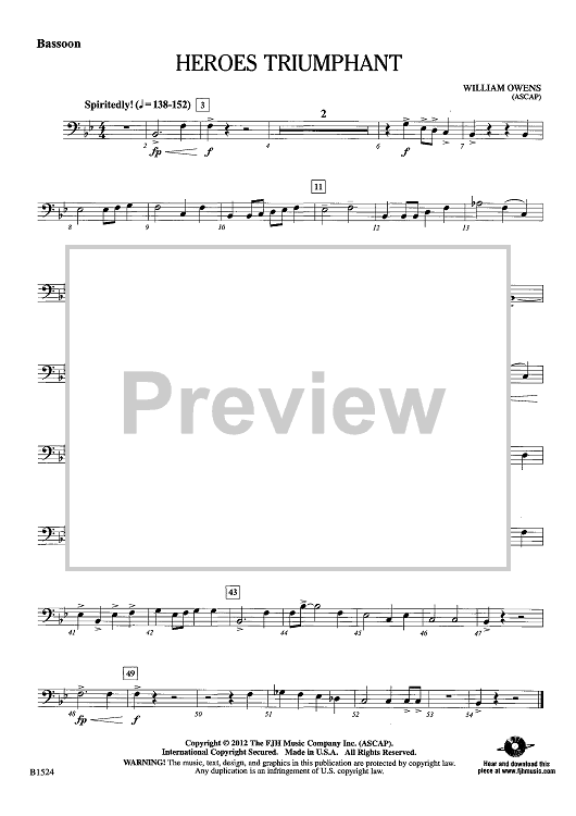 Digital Sheet Music for Heroes Triumphant - Bassoon by William Owens scored for Concert Band; id:438814
