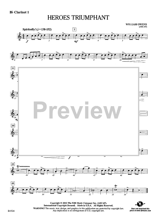 Digital Sheet Music for Heroes Triumphant - Bb Clarinet 1 by William Owens scored for Concert Band; id:438815
