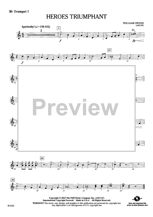 Digital Sheet Music for Heroes Triumphant - Bb Trumpet 1 by William Owens scored for Concert Band; id:438821