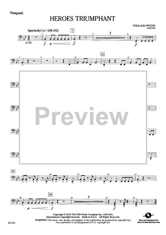 Digital Sheet Music for Heroes Triumphant - Timpani by William Owens scored for Concert Band; id:438828