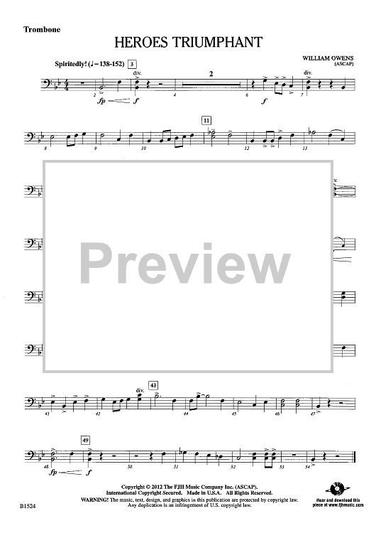 Digital Sheet Music for Heroes Triumphant - Trombone by William Owens scored for Concert Band; id:438824