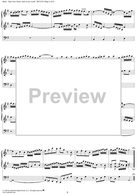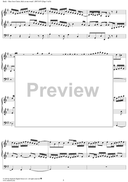 Digital Sheet Music for Herr Jesu Christ, dich zu uns wend, trio, No. 5 from "18 Leipzig Chorale Preludes", BWV655 by Johann Sebastian Bach scored for Organ Solo; id:319019