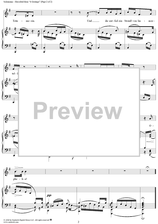 Digital Sheet Music for Herzeleid, No. 1, Op. 107 by Robert Schumann, T. Ullrich scored for Voice/Piano; id:318119