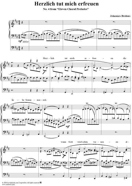 Digital Sheet Music for Herzlich tut mich erfreuen - No. 4 from "Eleven Choral Preludes" Op. posth 122 by , Johannes Brahms scored for Organ Solo; id:274794