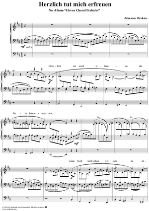 "Herzlich tut mich erfreuen - No. 4 from "Eleven Choral Preludes" Op. posth 122" Sheet Music by Johannes Brahms