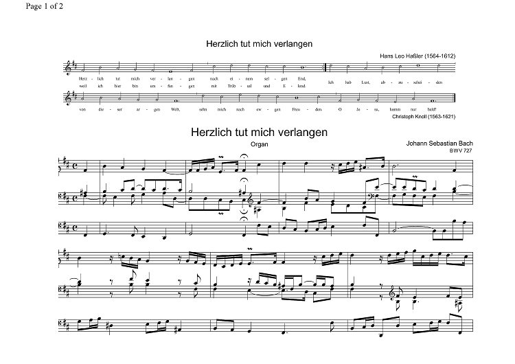 Digital Sheet Music for Herzlich tut mich verlangen BWV 727 by Johann Sebastian Bach scored for Organ Solo; id:330211