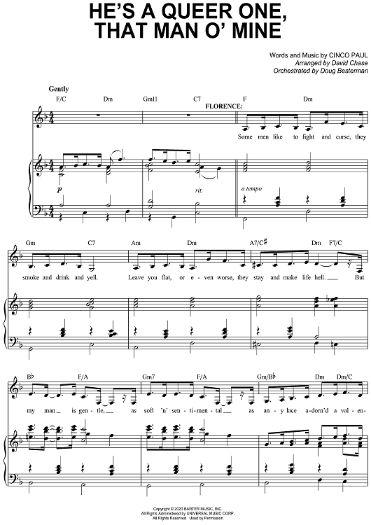 Digital Sheet Music for He's A Queer One, That Man O' Mine by Brian Chase, Cinco Paul, Doug Besterman scored for Piano Solo; id:470454