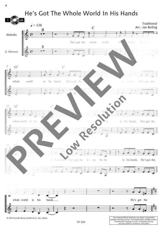 Digital Sheet Music for He's Got The Whole World In His Hands by Jan Beiling scored for 1-2 Violins; id:489744