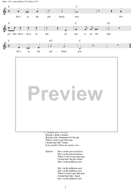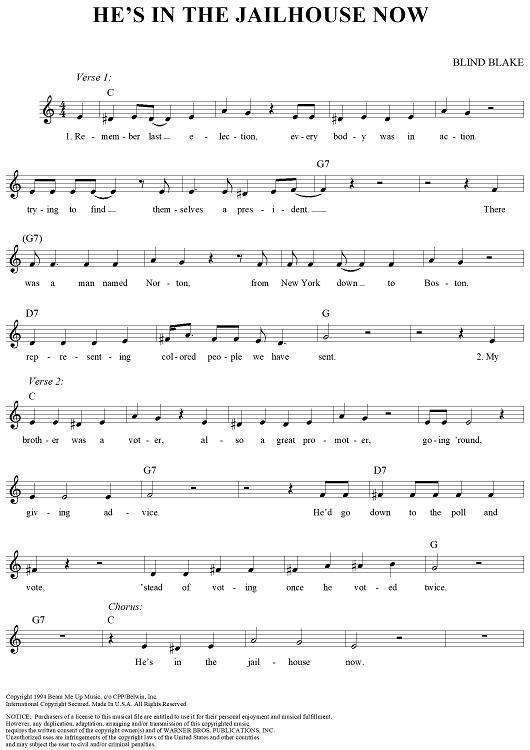 "He's in the Jailhouse Now" Sheet Music by Blind Blake