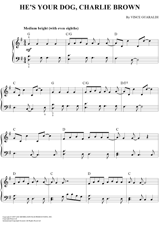 Digital Sheet Music for He's Your Dog, Charlie Brown by Vince Guaraldi scored for Easy Piano/Chords; id:367250