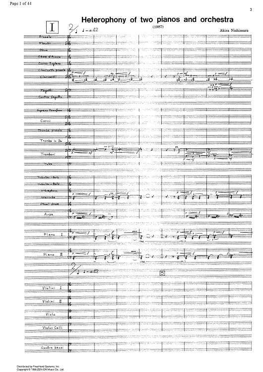 Digital Sheet Music for Heterophony of two piano and orchestra - Full Score by , Akira Nishimura scored for Orchestra; id:354005