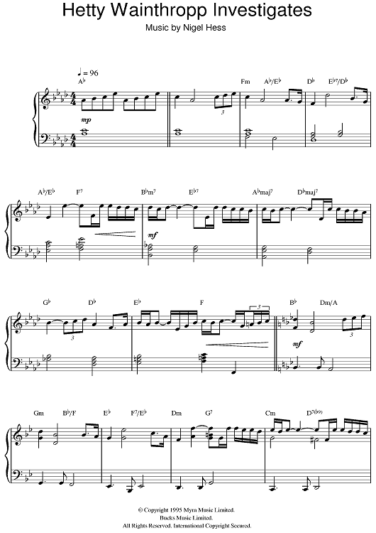 Digital Sheet Music for Hetty Wainthropp Investigates by Nigel Hess scored for Piano; id:384849