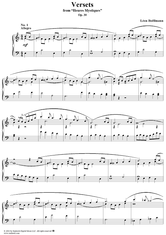 "Heures Mystiques, Volume 2, Op. 30: Versets" Sheet Music by Leon Boëllmann